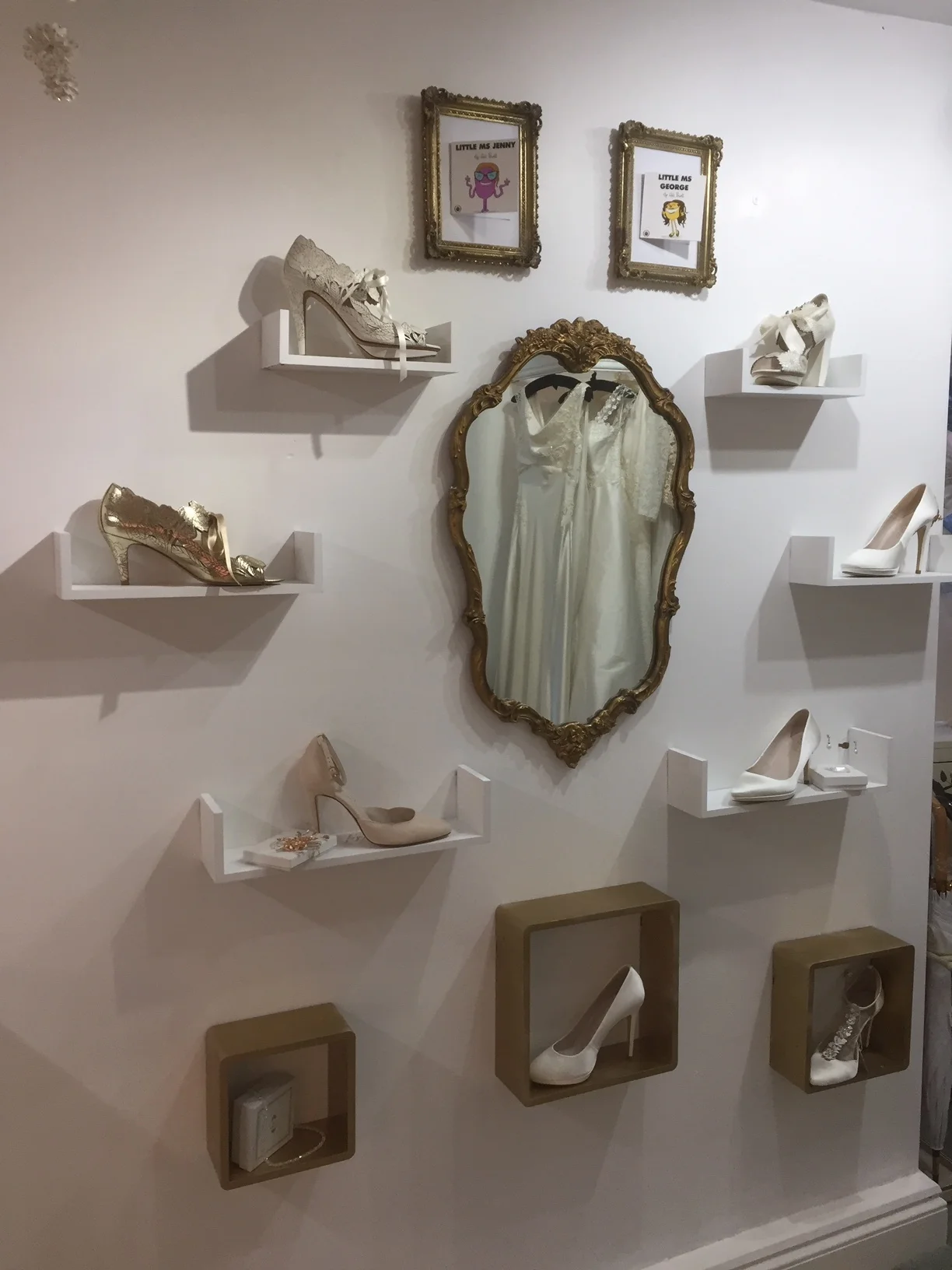 We have cleared the middle section of the boutique and created a feature shoe wall to show off our beautiful Harriet Wilde bridal shoes. Not only does this look fantastic, we can’t believe hoe much space we have created!